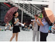 看,綜合部的小品《算卦》,長相斯文儒雅的呂本福演起算命先生來倒真象回事呢,他們惟妙惟肖的表演讓人忍俊不禁,哈哈大笑!